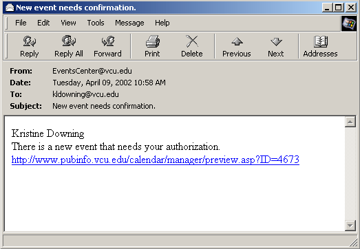 location. The email contains a link to the event needing