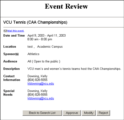 the event approval. Return to the List