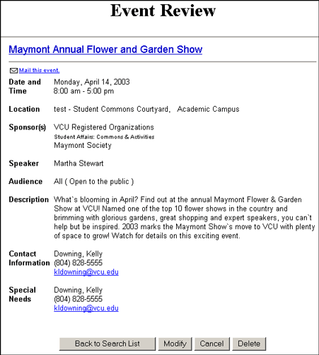 an event deletes the event from the VCU Events Calendar.
