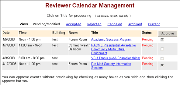 to each event to approve. (In the example below, the Reviewer