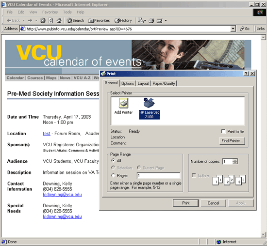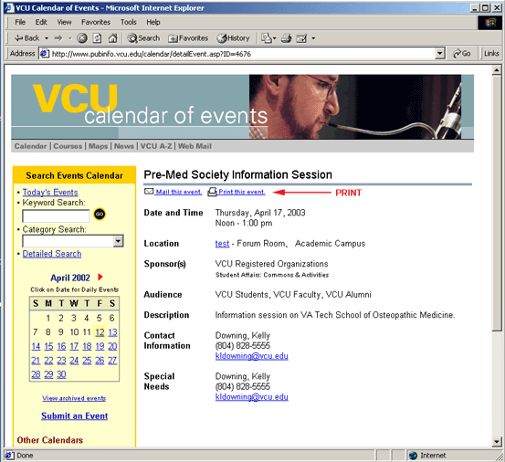 VCU Events Calendar, close the browser window.