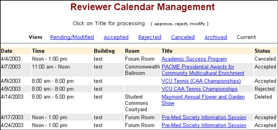 display a list of all events assigned to the Reviewer (excluding